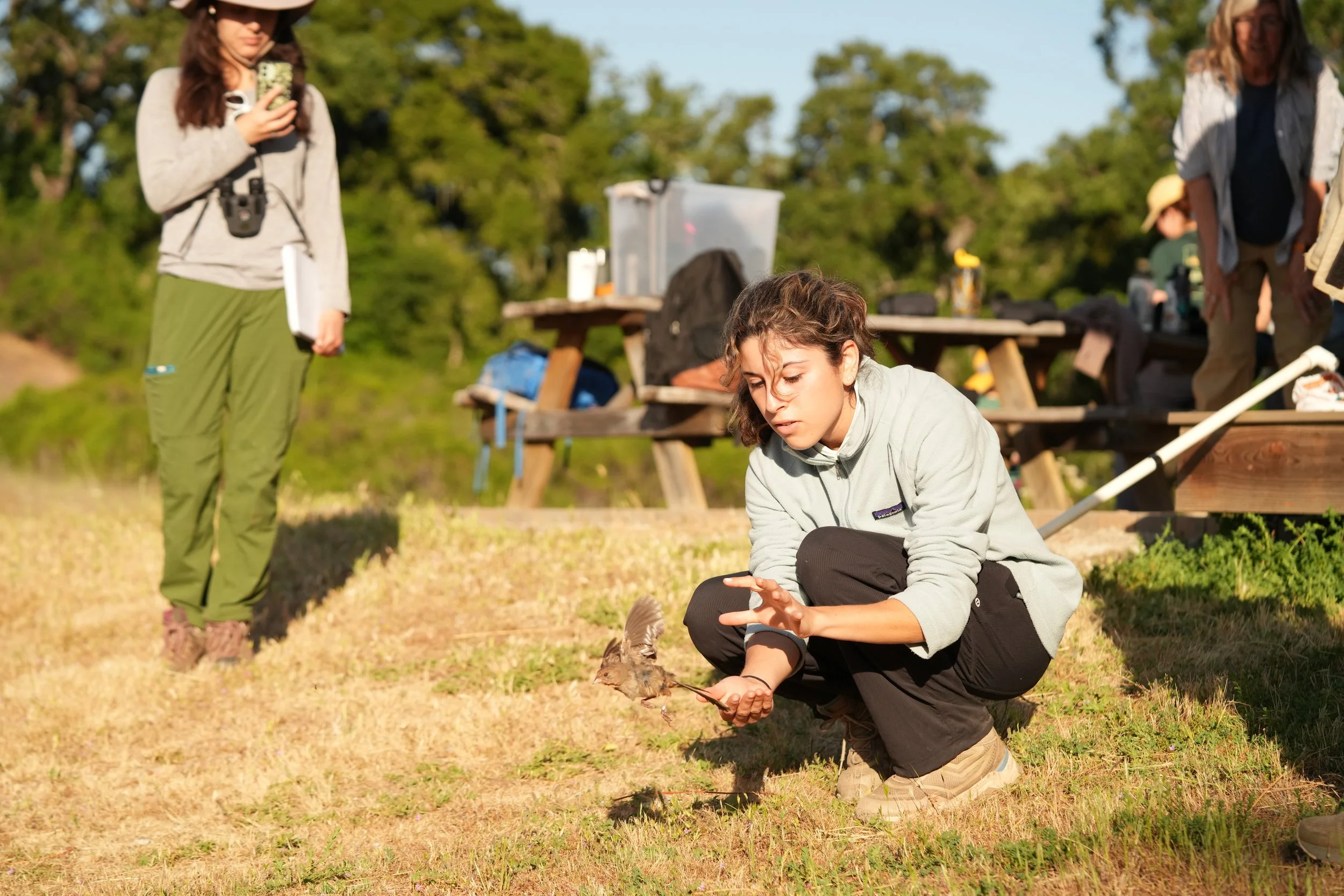 A California thrasher grumpily gazed at us, its captors, and a pair of quails graciously endured our admiring gazes.